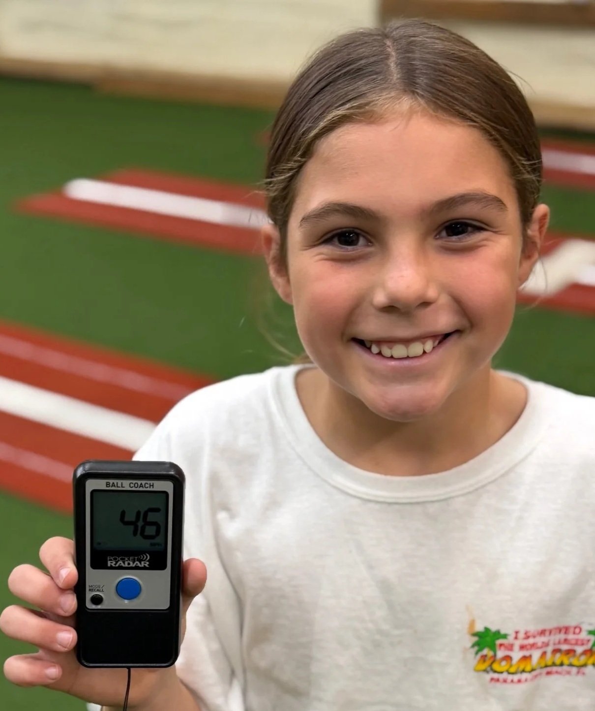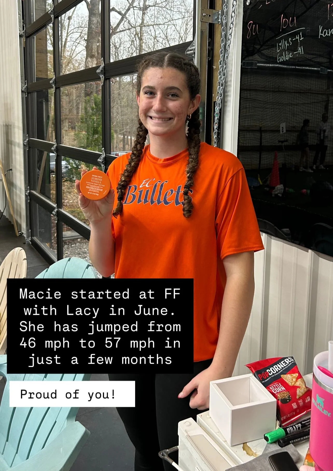 Marlee S started using our Velo Program and hit 2 PRs. Her speed started at 50mph and in a couple of weeks her first PR Was 52mph, an increase of 2mph. Her second PR was 55, for an overall increase of 5mph during the prorgam.